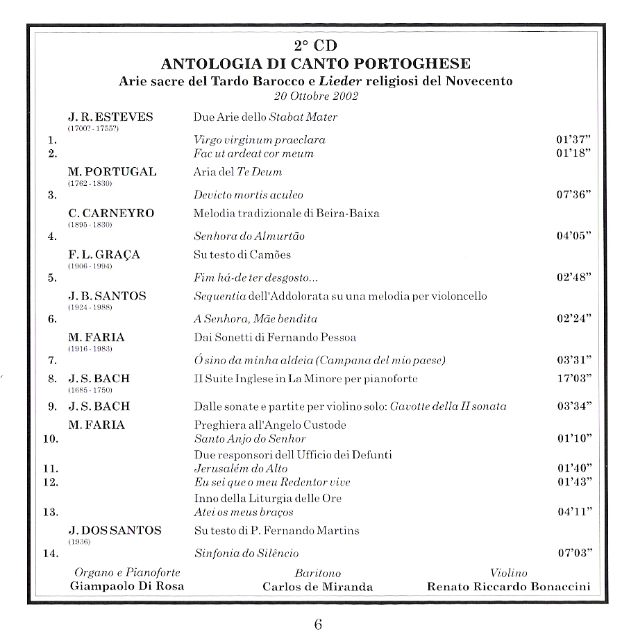 Lado a lado, nestes registos, encontram-se muitos nomes do panorama musical - moderno e antigo. Estas gravações apenas dizem respeito a concertos onde foram executadas obras do Maestro mas muitos outros concertos mereceram um registo sonoro e completam a vasta colecção discográfica do Instituto Português de Santo António em Roma.